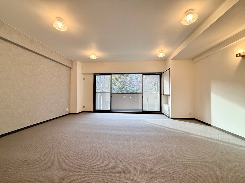 バルコニーの外に広がる鮮やかな紅葉 リフォーム済み、すぐに別荘ライフがスタートできます